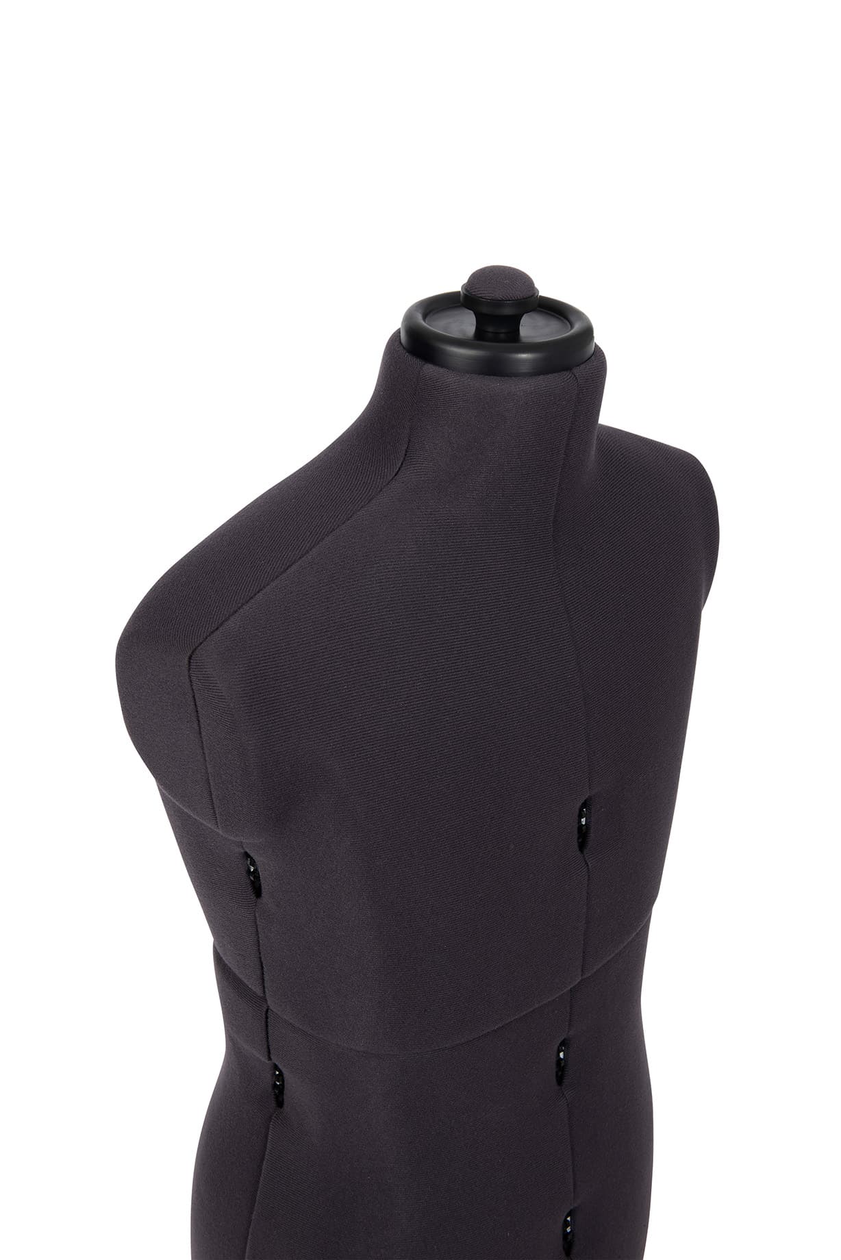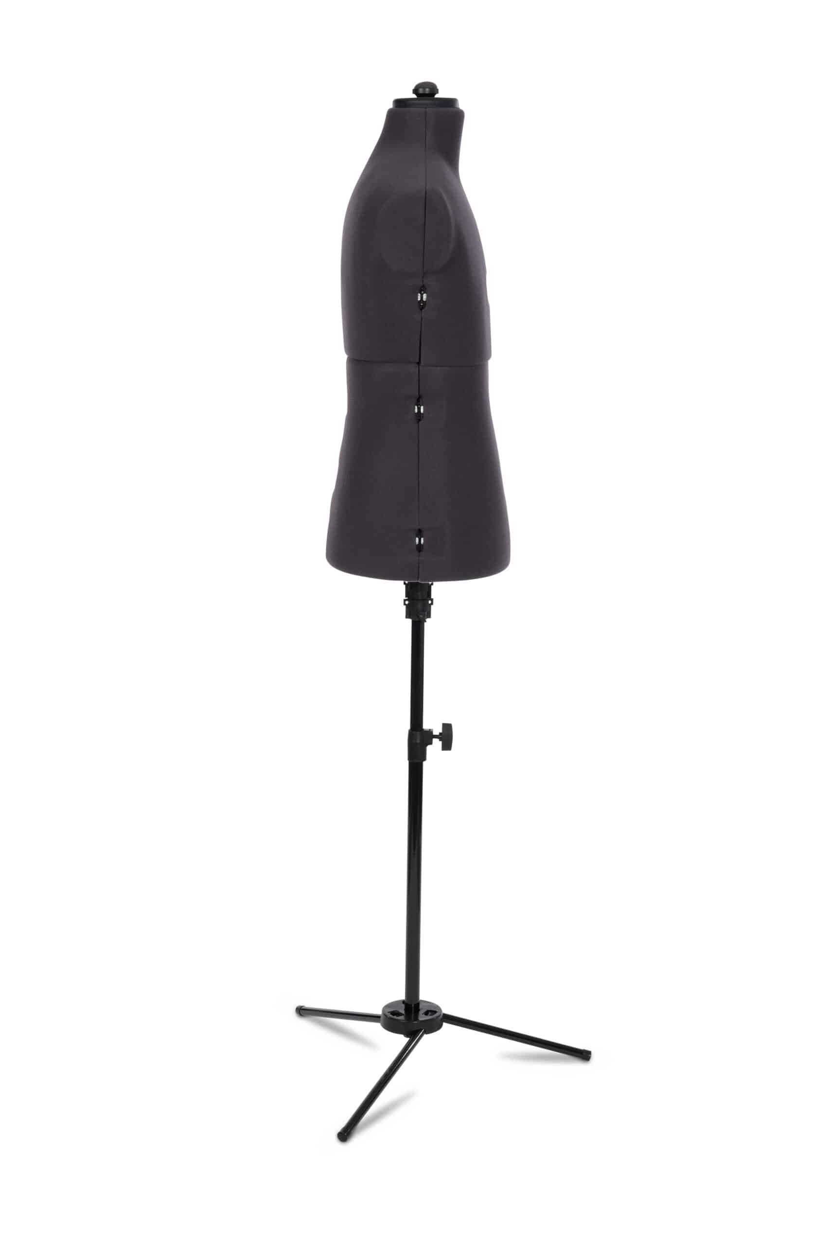 - The body is covered in a charcoal grey nylon fabric with a foam backing. This allows you to pin fabrics and patterns to the torso.